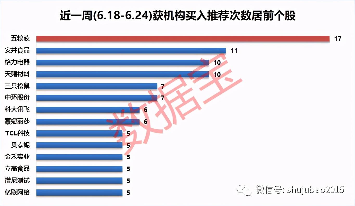 6月18至24日,大盘小幅下挫后收4连阳,累计涨幅1.16%,报3566.65点。58家机构合计对240只个股给出“买入”评级(包括买入、增持、强烈推荐、推荐)。