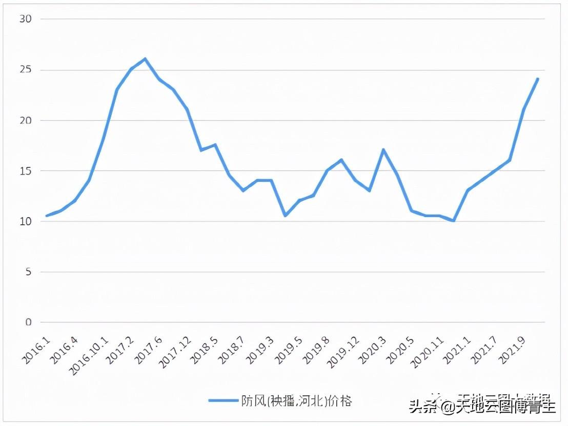 2021年牛市加之品种本身低价,引来商家关注,防风行情遂一路走高,目前价格突破25元,已然翻倍。