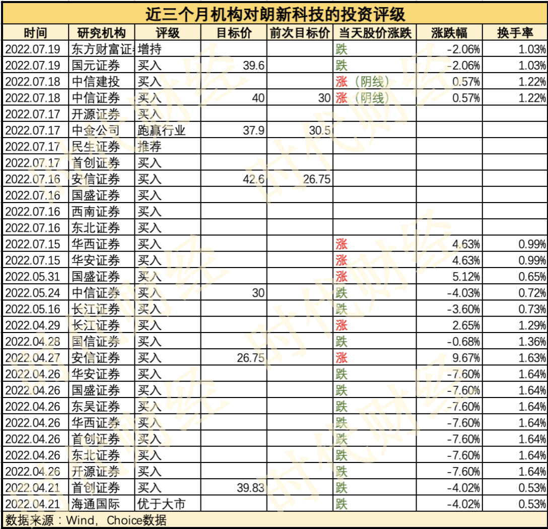 近三个月机构对朗新科技的投资评级。图片来源:时代财经 制图