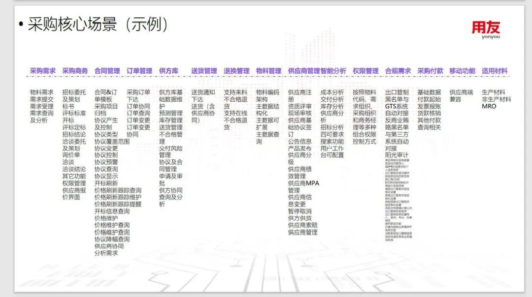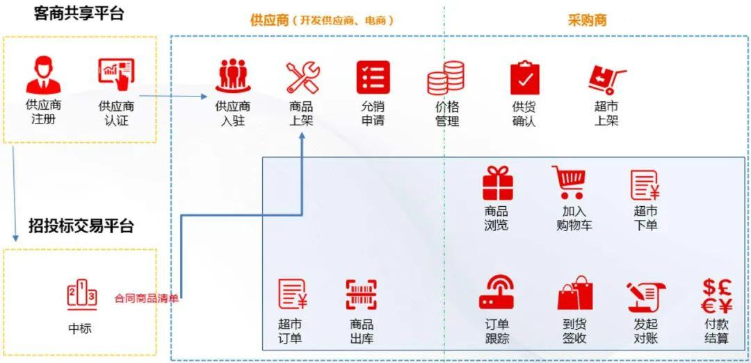 全面实现从需求计划、采购寻源管理(招投标、商城等)、采购执行、供应商协同、仓储管理的全过程供应链管理为业务目标。