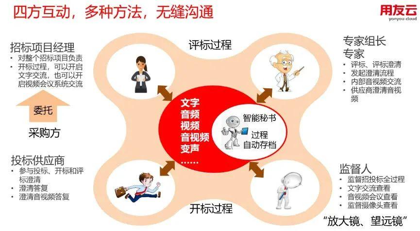 经理、供应商、监察人、专家4方均可以在远程,通过互联网进行沟通。