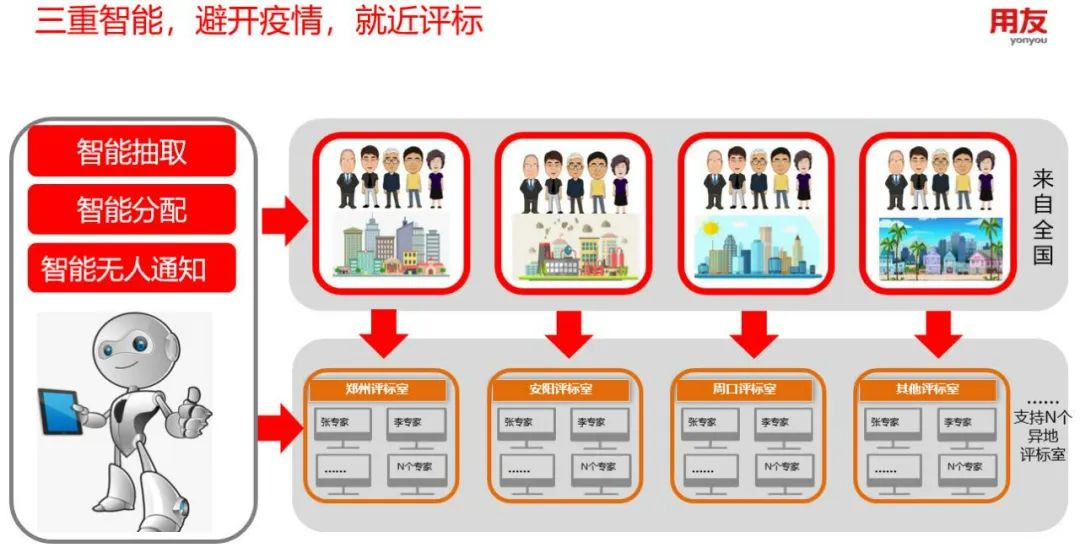 评标,专家的抽取、安排、通知等均智能化,专家可以远程评标,无需到现场。