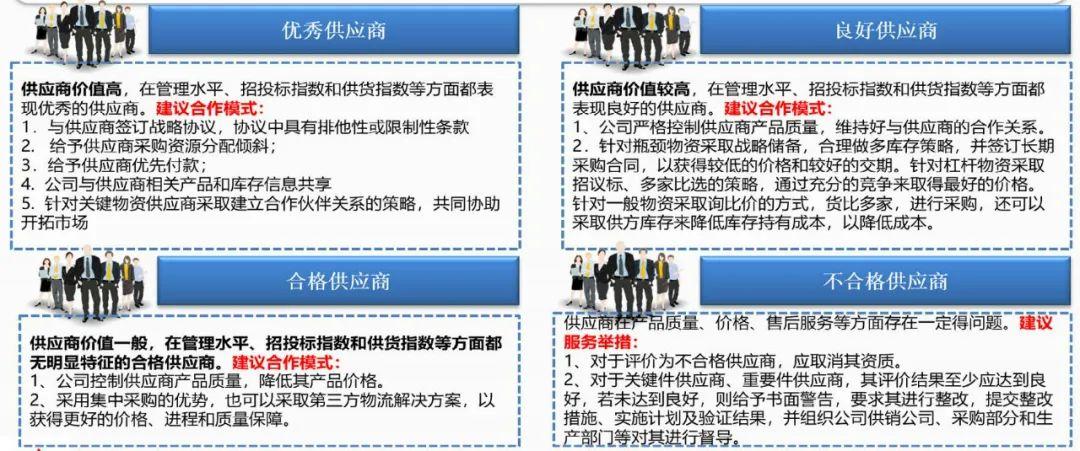 在供应商价值维度分析,区分合作模式,明确了集团统一的供应商管理岗位,制定集团级供应商管理制度。