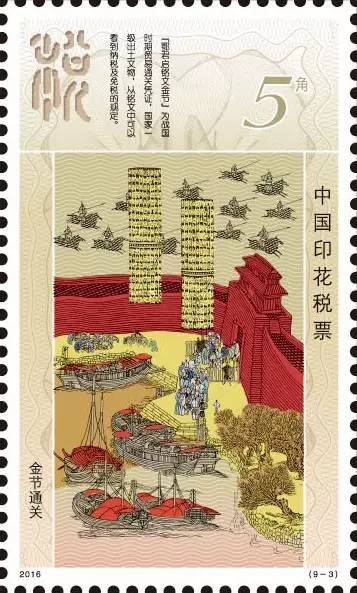 瑰丽典雅,楚风浓郁,2016年印花税票《荆关楚市》最近颇受关注。《荆关楚市》印花税票一套9枚,票面分别为神农兴耕、青铜铸币、金节通关、南船北马、草市列肆、粮盐贡赋、万里茶道、汉口开埠和荆楚三关。9枚印花税票以清晰的线索、绚丽的风格,勾勒出荆楚之地经济税收发展脉络,展现了荆楚地区在中国财税史上的重要影响,突显了荆山楚水深厚的历史文化底蕴。