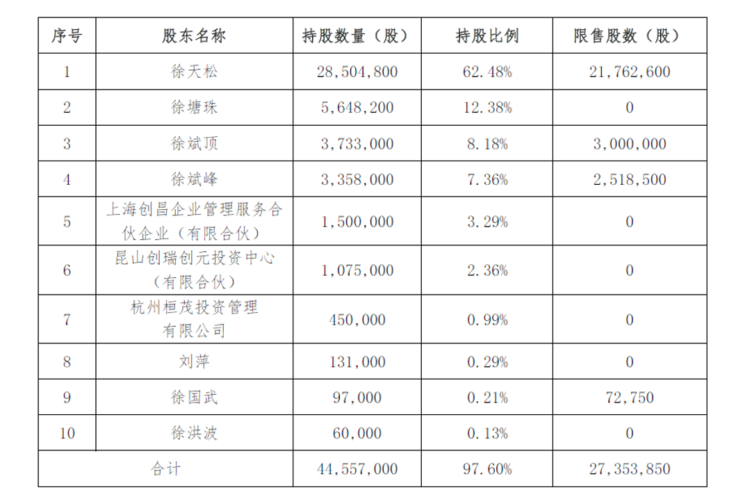 (1)股东徐塘珠与股东徐天松为配偶关系;