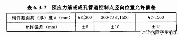 3预应力筋或成孔管道控制点竖向位置允许偏差应符合表6.3.7的规定。