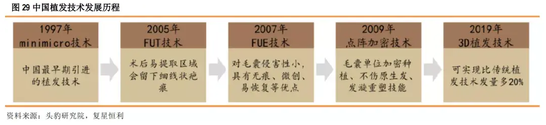 FUT向FUE等技术升级,推动植发者恢复更快、创口更小、后遗症更轻;