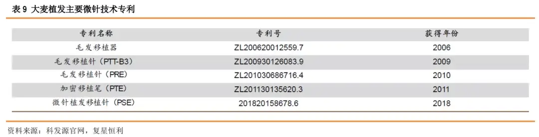 行业的技术进步曲率已经基本停滞,中短期内行业难以出现颠覆性技术,头部企业对技术的宣称略有差异,设备方面雍禾仍采用较为传统的宝石刀,大麦坚持微针技术,整体来看头部玩家之间的技术差异有限。