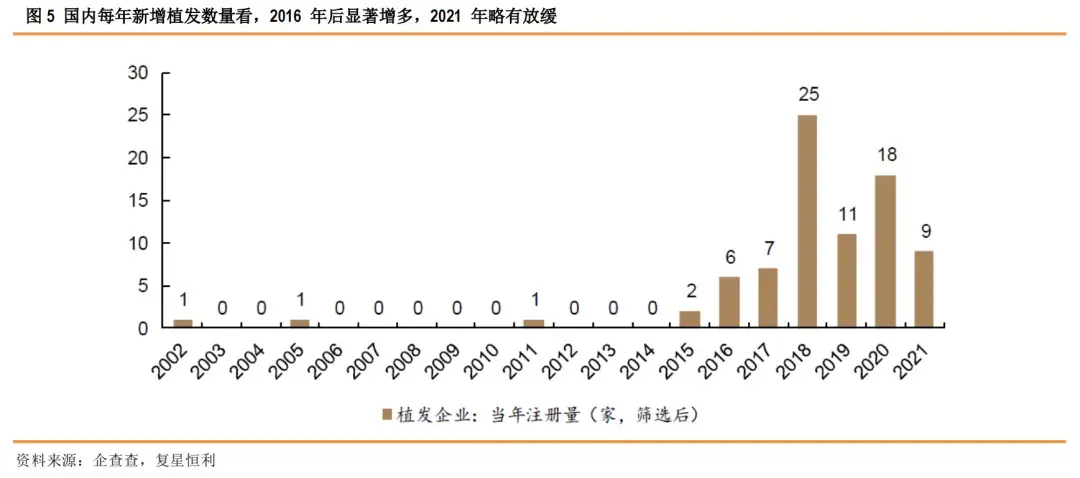 植发企业注册数复盘:新增植发2016年起开始入场,但医生创业案例&单体植发倒闭现象双双低于预期。