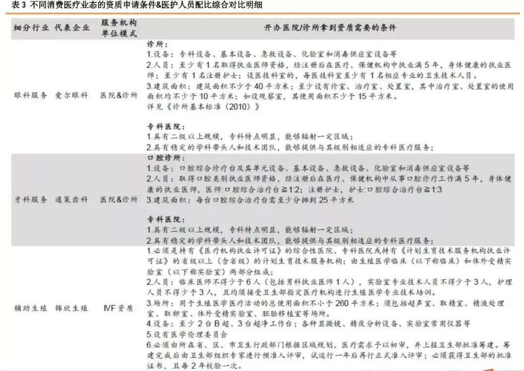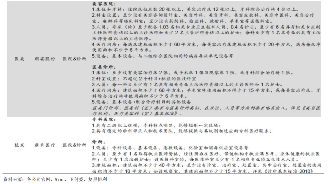 1)对比一:准入门槛。植发开店需诊所资质即可,资质申请相对容易,为快速全国门店下沉奠定基础。