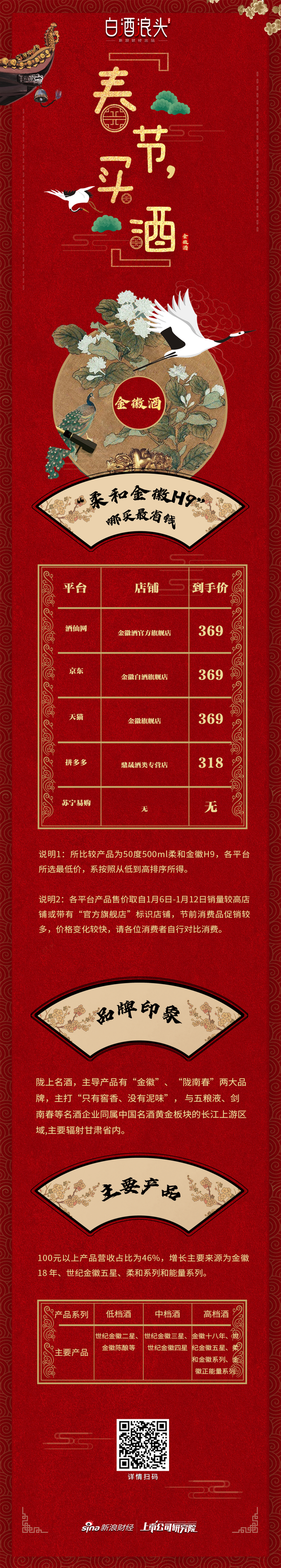 「春节买酒」金徽酒:仍以100元以下为主H9最低售318元-46度陇上江南酒多少钱