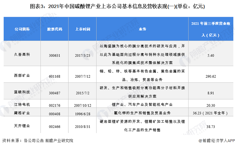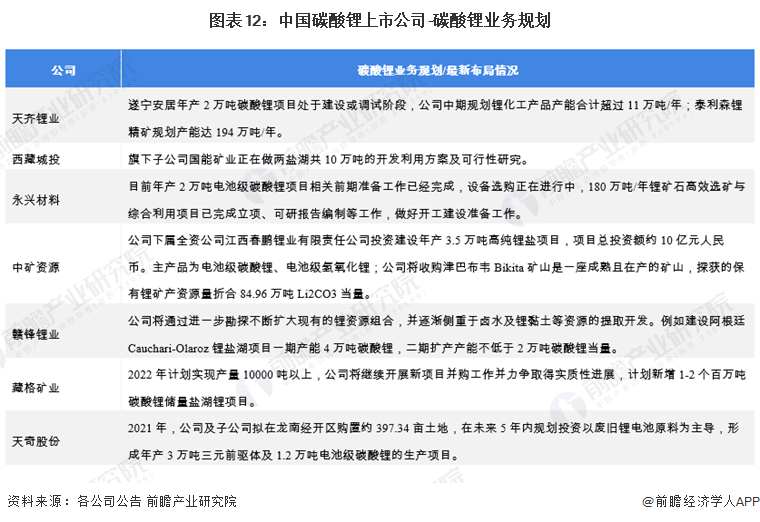 碳酸锂行业上市公司汇总,碳酸锂业务布局情况