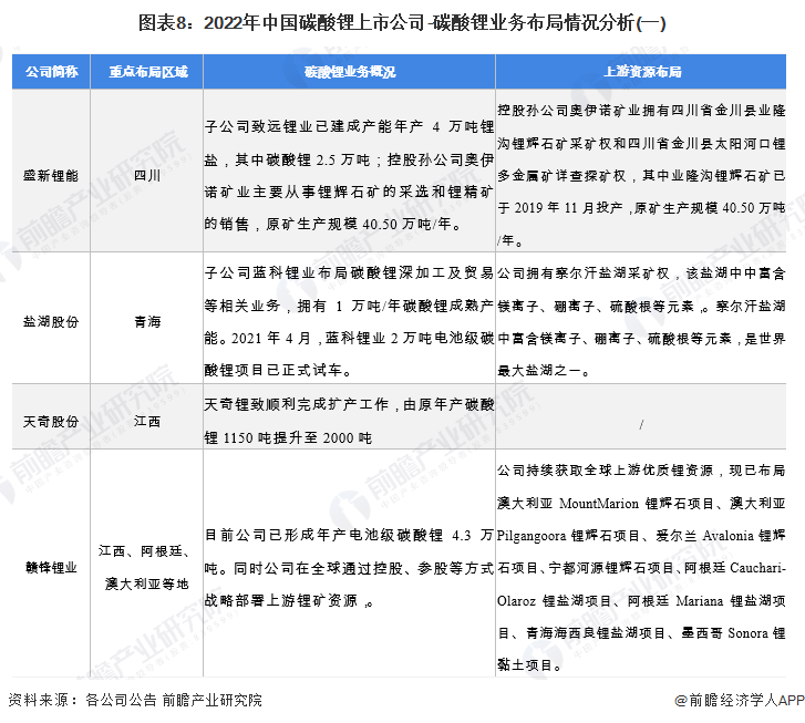 ——原标题:【最全】2022年碳酸锂行业上市公司全方位对比(附业务布局汇总、业绩对比、业务规划等)
