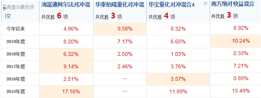 我们看比较优秀的一些量化对冲产品(剔除掉一些定开产品),总体上海富通阿尔法对冲混合A(519062)长期表现更优秀、稳定一些: